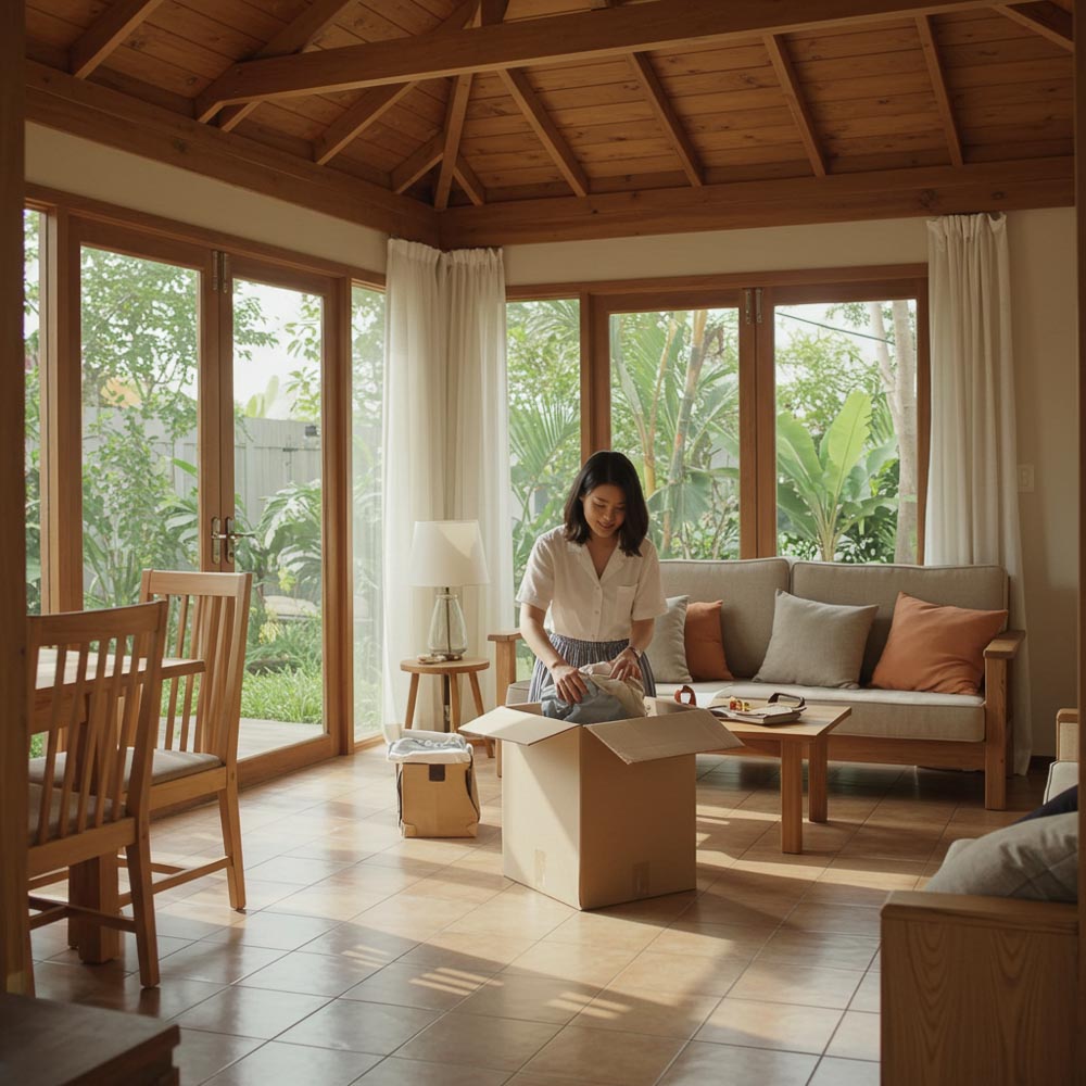 해상 운송이 일반적이며 250만 원 이상이 소요됩니다. 가구는 현지에서 새로 구입하는 경우가 많습니다.